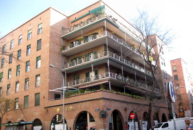 El edificio ocupa una manzana entre las calles de Hilarión Eslava, Rodríguez San Pedro, Gaztambide y Meléndez Valdés. Secundino Zuazo (1887-1971), maestro de la arquitectura racionalista y autor de trabajos como el Palacio de la Música de Gran Vía o los Nuevos Ministerios, recibió el encargo del Banco Hispano Colonial y proyectó para esta manzana completa de Chamberí el gran edificio de viviendas del primer tercio del siglo pasado madrileño, un verdadero hito en la historia de la arquitectura española. El bloque, de ladrillo rojo, se estructura en torno a tres patios interiores ajardinados, siendo el central el de mayor tamaño, y levanta dos cuerpos paralelos de cinco alturas, con las cajas de las escaleras dispuestas como puentes. Hay en total 288 viviendas de muy diferentes tipologías, todas ellas exteriores y con buena iluminación natural y ventilación, dentro de la corriente denominada higienista. En la planta baja se disponen arcadas neomudéjares, que coinciden con los soportales y escaparates de algunas tiendas. Además, Zuazo coloca en todos los balcones elementos para que los inquilinos cuelguen tiestos y macetas, lo que acabaría por bautizar como “La Casa de las Flores” el edificio, tal y como señala el propio Neruda en Confieso que he vivido:“Yo vivía en un barrio/ de Madrid, con campanas,/ con relojes, con árboles (…) Mi casa era llamada / la casa de las flores, porque por todas partes / estallaban geranios: era / una bella casa / con perros y chiquillos… (…)/ ¿Te acuerdas, Rafael? / Federico, ¿te acuerdas / debajo de la tierra, / te acuerdas de mi casa con balcones en donde / la luz de junio ahogaba flores en tu boca?”.