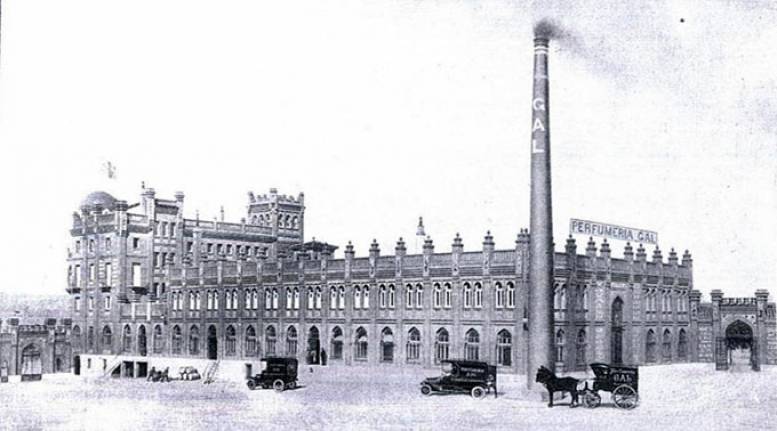Detrás de esta historia de éxito se encuentran los hermanos Salvador y Eusebio Echeandia Gal, que primeramente instalarían, en 1898, una droguería en la calle del Arenal, 2. Desde allí comercializan su “Petróleo Gal”, una loción contra la calvicie –producto muy en boga por entonces– fabricada con “el petróleo natural más puro” e indicada “para combatir el eczema, eliminar la caspa, regenerar el cabello y evitar la aparición de canas”. Muy pronto el negocio se queda pequeño y Salvador, experto en técnicas publicitarias, busca el apoyo financiero de un socio, Lesmes Sáinz de Vicuña, para producir el petróleo a escala industrial. En 1901 abre la primera fábrica Gal en la calle de Ferraz, donde comenzarían a vender la colonia y, posteriormente, el jabón Heno de Pravia, invento de la factoría y que Salvador había bautizado tras un viaje por Asturias, inspirándose en el olor del heno recién cortado.La más moderna factoría