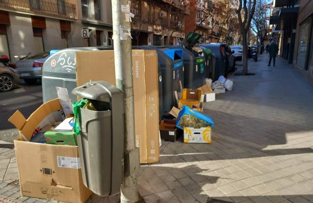 Según Pilar, el problema se da sobre todo alrededor de muchos contenedores, donde con frecuencia se acumula el cartón o el vidrio por parte de los comercios de la zona. “Yo vivo por la zona de Ponzano. El camión de la basura pasa sobre la una de la madrugada. Los bares cierran a las dos, entonces la bolsa se queda en la calle o la echan en los cubos de basura del vecindario. Igual ocurre con alguna pizzería de la zona, que deja fuera todo y el cartón se va acumulando”, dice.