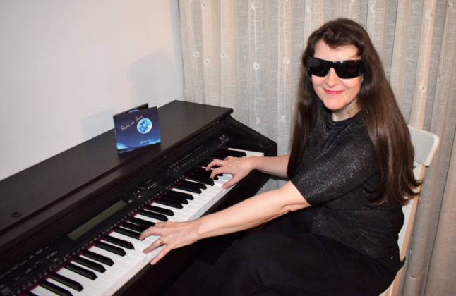 Los primeros acordes de su proyecto musical sonaron en noviembre de 2015, en un festival para personas discapacitadas que se celebró en Oviedo: “Fue la primera vez que actúe, junto a mi pianista Carolina Loureiro, y gustó mucho, así que me animé a componer”. Y así, nota a nota, estrofa a estrofa, escritas desde la sensibilidad, Cristina Díaz presentó su primer trabajo discográfico en noviembre de 2017, ‘Luna Azul’, en su barrio de Chamberí, en la Sala Clamores: 10 temas en español, todos compuestos por ella –‘Blues en las Venas’, ‘Aguas de Cristal’, ‘No hay Tristeza’, ‘Elixir’…, que cantan al amor, a ciudades, a la amistad y a su hija Carolina de 14 años en ‘Tesoro Oriental’… “Son letras que transmiten lo positivo de todo”.