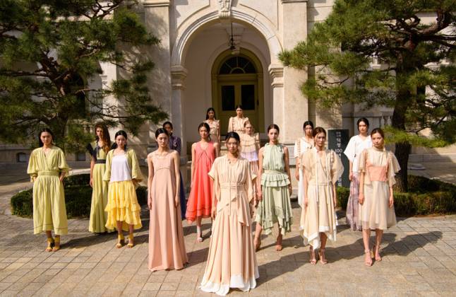 Bajo el lema #LoViejovisteloNuevo, Kim A-Young (Busan, 1976) explora el universo del hanbok, ofreciendo una perspectiva más actual y un gran sentido del equilibrio entre la practicidad y la creatividad. Kim hace uso de un patrón tridimensional basado en las elegantes curvas de las damas de la corte real y las líneas nítidas y elegantes de los aleros del palacio coreano de la dinastía Joseon (1392-1897).