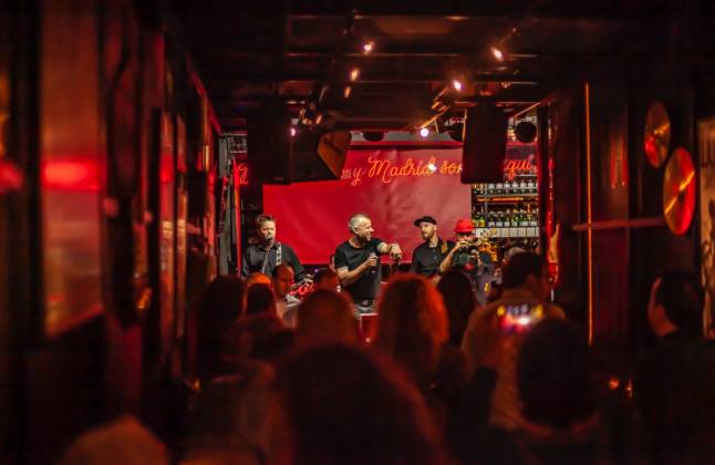 El Cien por Cien (Santísima Trinidad, 30) es toda una institución en la noche madrileña, desde que en 1985 abriera sus puertas por primera vez. Hoy, 38 años más tarde, Chamberí sigue albergando uno de los locales de referencia para los amantes del pop-rock en español, género que se convirtió en su razón de ser, cuando a principios de los años 90 un cambio de rumbo en la dirección del local asumió el riesgo de empezar a programar y pinchar "cien por cien" rock nacional o en nuestro idioma, “en unos tiempos en los que eso suponía nadar a contracorriente”. El riesgo de la apuesta valió la pena y, desde entonces, devotos del rock en español, tanto anónimos como estrellas de la talla de Dani Martín, Loquillo o Antonio Vega, han llenado y llenan la sala cada noche desde la pista, desde el escenario o desde esas paredes repletas de fotografías y recuerdos.