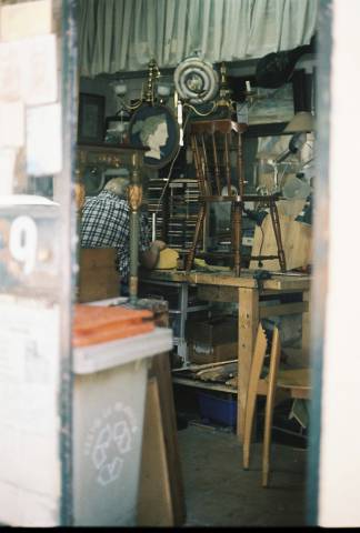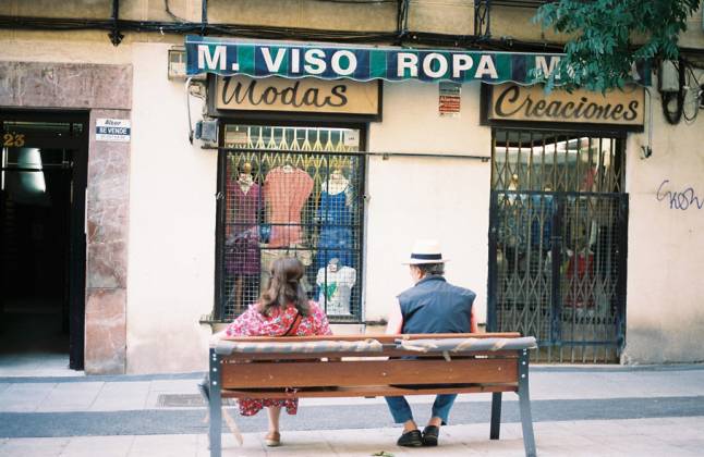 Belén dio comienzo a este proyecto fotográfico durante uno de sus habituales paseos con una cámara analógica en las manos. “La primera foto que realicé fue a un señor mayor caminando junto a una terraza, que era muy moderna y parece que no es su entorno. Me gustaba el contraste”, explica. Otra imagen significativa es la que muestra el taller de Andrés del Amor desde la calle y, sobre todo, en la que el artesano aparece trabajando. “Entré a contarle la idea y le pedí permiso para hacerle una foto mientras creaba. Y así fue todo, de manera improvisada, captando la rutina de la gente de Chamberí paseando o en sus pequeños comercios, que resisten, sobre todo los artesanos con su arte”, recalca.