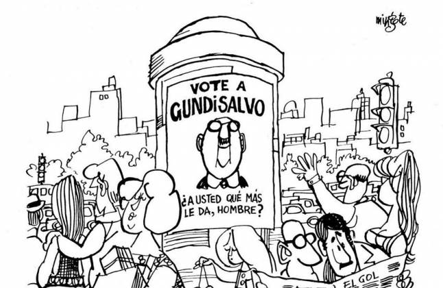 Todavía no hemos asistido a una campaña electoral con un eslogan que supere aquel con el que pedía el voto Gundisalvo: “¿A usted qué más le da, hombre?”. Esa pregunta cínica que hace más de 50 años plasmara en sus viñetas Antonio Mingote sintetiza aún hoy los alicientes de muchos votantes y el oculto argumento de todos los elegibles. En 1971, con motivo de unas elecciones a procuradores en Cortes, el genial dibujante se sacó del magín a este candidato bajito, calvo y regordete para hacer pasar a los nuevos políticos, entonces especie exótica, por el espejo cóncavo del aperturismo y la Transición.