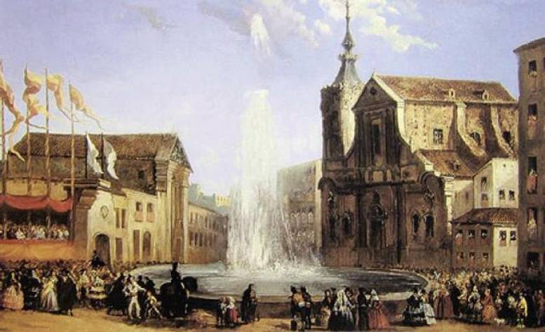 En la primera mitad del siglo XIX, Madrid contaba con unos 200.000 habitantes, y muy poquitos disfrutaban de agua en sus casas. El resto cogía agua de alguna de las 54 fuentes repartidas por la ciudad. Inseparables de los surtidores vivían los aguadores, que por entonces sumaban unos 920, se dedicaban a la venta ambulante de agua, la cual transportaban hasta los aljibes de las viviendas. El gremio tenía reservado para su uso una serie de fuentes en la ciudad.