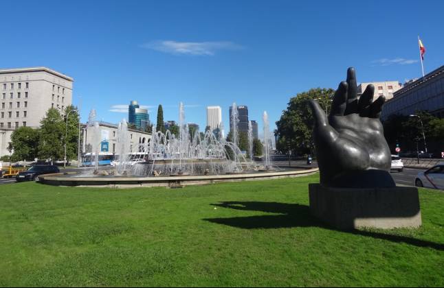 La rotonda que rodea la fuente sufrió una reforma en los años ochenta para adecuarla a los flujos de tráfico, extendiendo su silueta circular hacia el Sur, donde se instaló en 1998, la escultura de la Mano del escultor y pintor colombiano Fernando Botero.