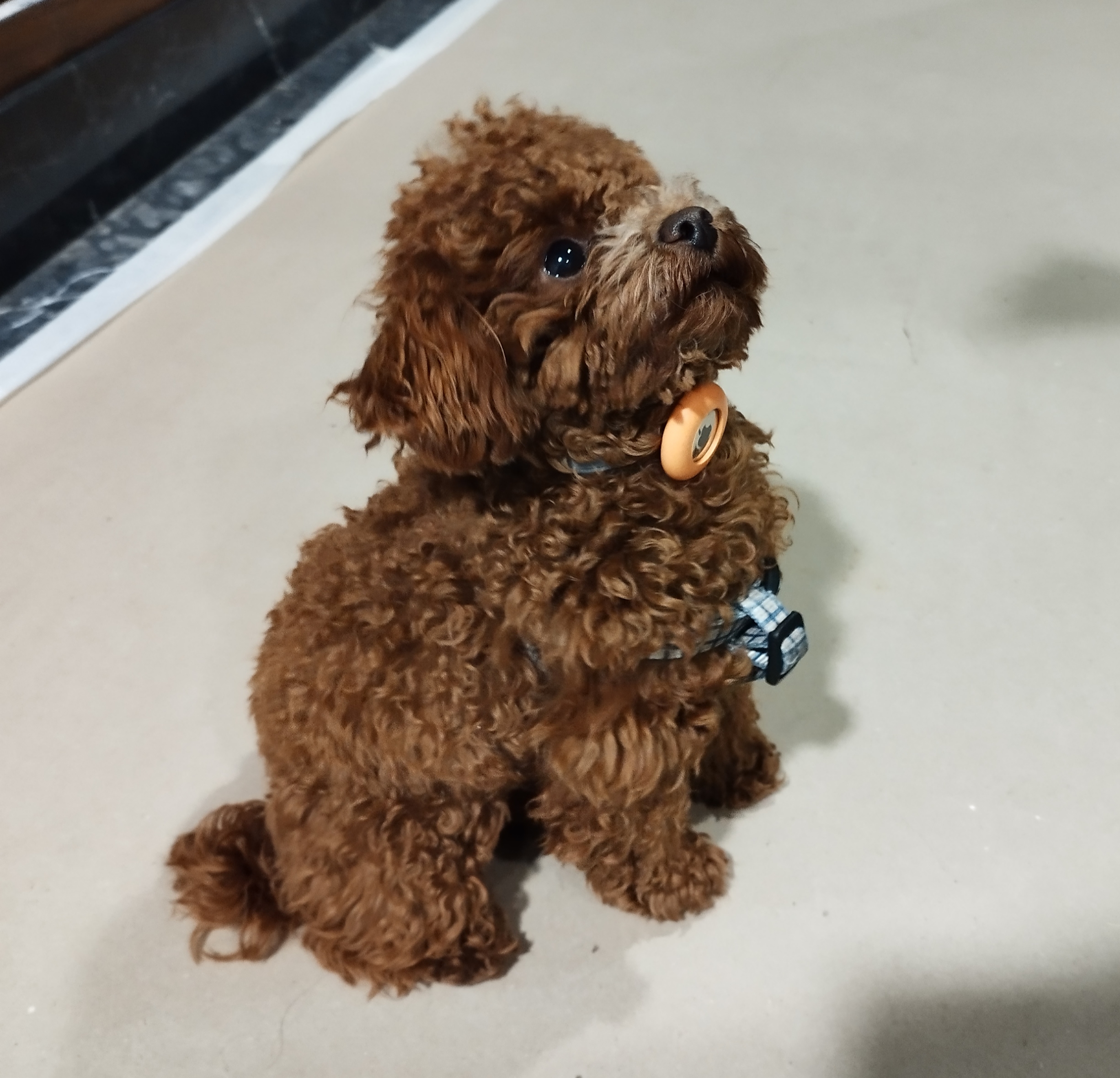Hola! Soy Curro, un poodle toy de un añito, nervioso, juguetón y muy cariñoso. Me encanta salir al parque a jugar con los demás perretes, aunque haga mal tiempo me da igual. Lo que no me gusta nada, nada, es quedarme solo en casa. Echo mucho de menos a mi abueli, que me consiente