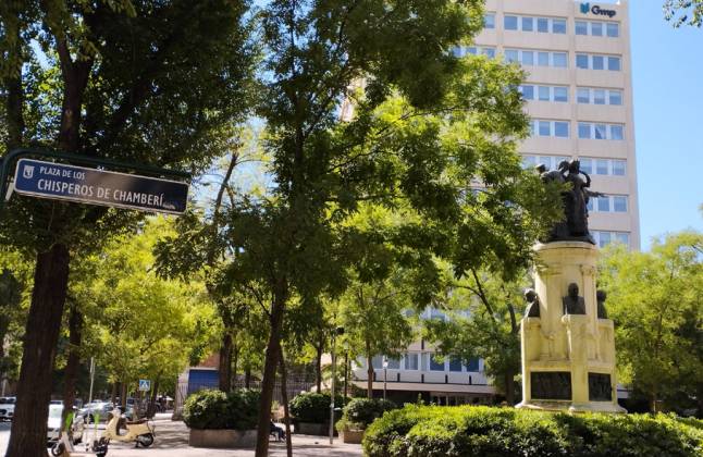 El grupo escultórico ‘Monumento a los saineteros madrileños’, originalmente denominado Monumento a los Chisperos, es obra del escultor sevillano Lorenzo Coullaut Valera. Fue inaugurado en 1913 en la Glorieta de San Vicente y trasladado a su ubicación actual en 1933. Se encuentra en la Plaza de los Chisperos de Chamberí –bautizada oficialmente con ese nombre, hasta entonces oficioso, en 2018–, una zona ajardinada situada en la confluencia de las calles de Luchana, Manuel Silvela y Francisco de Rojas.