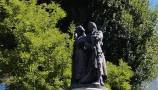 El grupo escultórico se levanta en medio de un arriate circular ajardinado, rodeado por una verja protectora de cerrajería de acero. En el borde del arriate se encuentra un pedestal cúbico, que porta una placa de bronce conmemorativa.