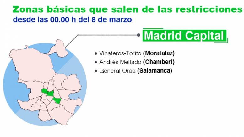 Ahora, sin embargo, la “buena evolución” de la situación epidemiológica ha permitido, según la directora general de Salud Pública, Elena Andradas, levantar dichas restricciones, tanto en el área afectada de Chamberí como en las de General Oraá, en el distrito de Salamanca, y Vinateros-Torito, en Moratalaz, todas ellas en la capital, que quedará totalmente libre de este tipo de confinamientos por ZBS.