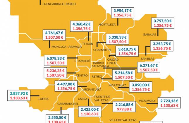 Así, la empresa ha establecido para el distrito de Chamberí un valor máximo de 6.078,33 euros por metro cuadrado útil de vivienda, y de 1.507,50 euros de máximo por metro cuadrado de para los garajes y trasteros vinculados. La cifra supone una subida del 140% de la tasación respecto a la ofrecida anteriormente, y que sitúa a nuestro distrito como el segundo donde el Consistorio más dinero está dispuesto a pagar, sólo por detrás de Salamanca, con 6.271 euros por metro cuadrado, tras incrementar su valor un 147%.