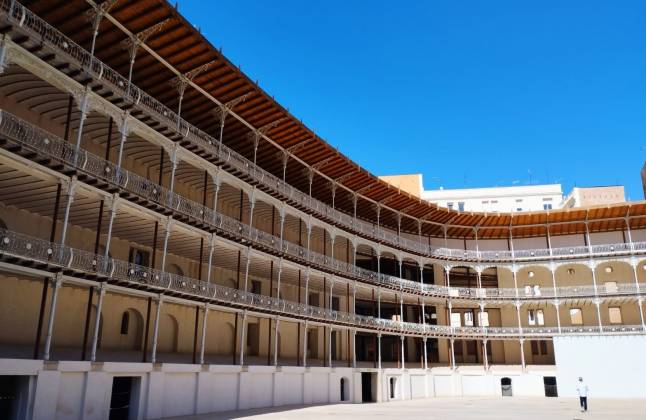 - Se podrá autorizar el cubrimiento del patio y de la cancha de juego en las condiciones previstas en las normas urbanísticas, de modo que la superficie cubierta no compute a efectos de edificabilidad. Siempre que se ajuste a lo establecido, la cubierta será traslúcida, ligera y disociada de la edificación, sin afectar a los valores que motivaron la declaración del inmueble como BIC, de forma que desde el espacio interior se pueda seguir apreciando con nitidez el tratamiento de fachada urbana, creando la percepción de plaza pública.