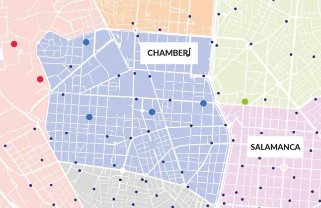 En Chamberí, los puntos donde se ubicarán las cuatro nuevas estaciones serán los cruces de las calles de Sotomayor y Guzmán el Bueno (Vallehermoso); de Blasco de Garay y Donoso Cortés (Gaztambide); de García Paredes y Santísima Trinidad (Trafalgar); y de José Abascal con Zurbano, en el barrio de Almagro.