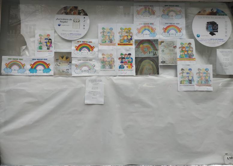 Con este mismo criterio, en el escaparate contiguo de su óptica y ortopedia colocan los dibujos que reparten, para que tanto niños como adultos coloreen y se los envíen por correo electrónico o se lo vuelvan a llevar en su siguiente visita. En ellos se pueden leer mensajes como “Gracias por vuestro trabajo”, “Todo saldrá bien”, “Nos separamos hoy para abrazarnos más fuerte mañana” o “Nosotros nos quedamos en casa”. La distancia de seguridad necesaria entre las personas les impide seguir desarrollando su trabajo en el interior, por lo que también han puesto a disposición de todas aquellas personas que tengan problemas o dudas un servicio de urgencias telefónico. Y, ante la falta de medios sanitarios, la farmacia GA recoge las conocidas máscaras de snorkel comercializadas por Decathlon para entregarlas en diversos hospitales madrileños, donde son adaptadas como asistentes de respiración para los enfermos.