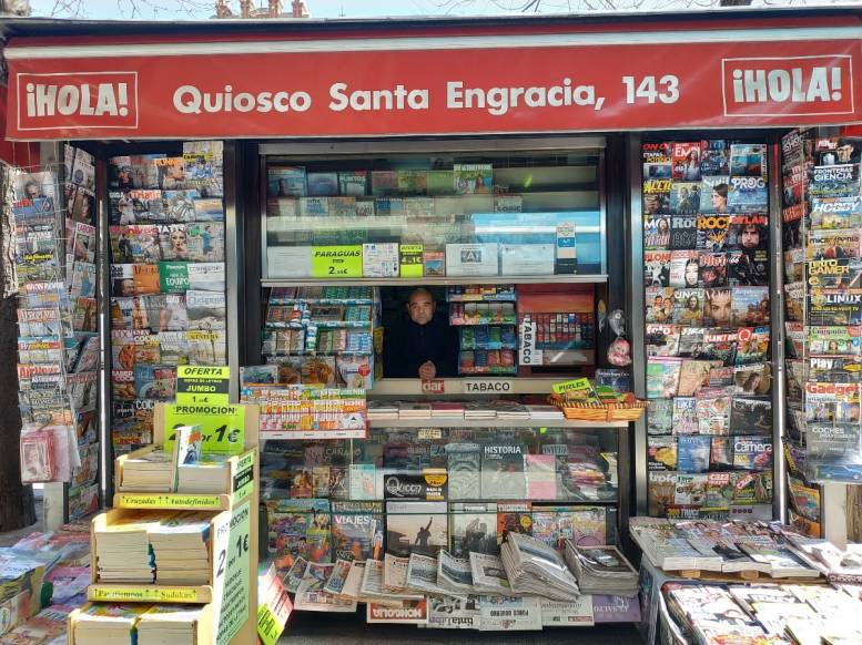Para José Luis Rodríguez, que dirige el quiosco de la calle de Santa Engracia, 143, la crisis del coronavirus le ha obligado a reorganizar su trabajo. Ha reducido su horario y ahora cierra a las 14 horas, en vez de abrir a lo largo de toda la jornada. Además, ha visto cómo sus ventas han disminuido como consecuencia de esta situación. Cuenta que la mayoría de sus clientes son personas mayores, por lo que tanto para estas como aquellas que lo soliciten, José Luis se ofrece para llevar la prensa a domicilio, así como revistas y pasatiempos en los que puedan estar interesados. De esta manera, dice que ayuda a que la gente pueda seguir informada y leyendo su periódico de referencia, sin necesidad de salir a la calle.