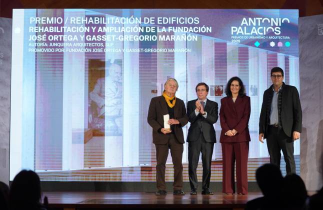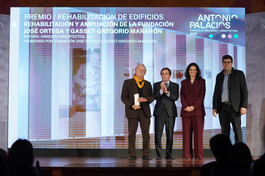 La directora general de la Fundación Ortega-Marañón, Lucía Sala, y los arquitectos de Junquera Arquitectos, responsables del proyecto, recogieron el premio el pasado diciembre, de manos del alcalde de Madrid, José Luis Martínez-Almeida, en el marco de la primera edición de unos premios creados para reconocer proyectos, que contribuyen a mejorar la calidad urbana, el valor patrimonial y la sostenibilidad de la ciudad.