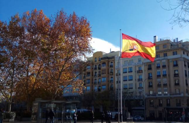 La Plaza de Chamberí luce desde este jueves una bandera nacional de gran tamaño, colocada por el Ayuntamiento de Madrid en un acto con motivo del Día de la Constitución. La enseña tiene unas dimensiones de cinco metros de ancho por 7,5 de largo, y está colocada en un mástil de 18 metros de altura.