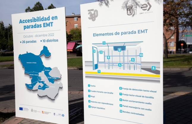 La red de paradas de la EMT se compone de 5.182 nodos –paradas en ambos sentidos de una calle, o ubicadas en una plaza–, de los que cerca de un 7 % son susceptibles de someterse a mejoras de accesibilidad y comodidad. Actualmente existen 4.500 marquesinas en la ciudad.