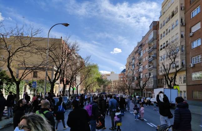 La revuelta escolar llegó a Madrid el 12 de marzo para exigir unas calles seguras y pacíficas con menos coches y menos contaminación para sus alumnos. Tal y como comenzaron haciendo el pasado mes de diciembre en la provincia de Barcelona, distintos grupos de familias cortaron el pasado viernes varias calles de la capital, con el fin de visibilizar la importancia de reducir el ruido y la polución en los entornos educativos cercanos.