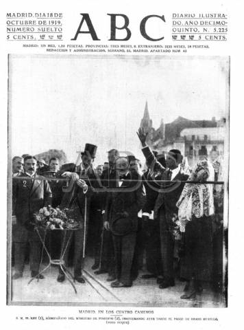 Rodeado de una cohorte de personalidades, entre las que se encontraban el ministro de Fomento, Luis Marichalar y Monreal –abuelo del ex esposo de la infanta Elena–, el alcalde de la capital, Luis Garrido Juaristi o el ingeniero del proyecto, Miguel Otamendi, el monarca escogió para el estreno este vértice del distrito, frontera del entonces periférico arrabal de entrada a Chamartín de la Rosa, donde las casas del barrio aparecían “engalanadas con colgaduras”, según el testimonio que al día siguiente recogía ABC. Precisamente en la portada del diario, que titulaba “Madrid, en los Cuatro Caminos”, se observa tras la figura real el chapitel neogótico de la parroquia de Nuestra Señora de los Ángeles, de Bravo Murillo.