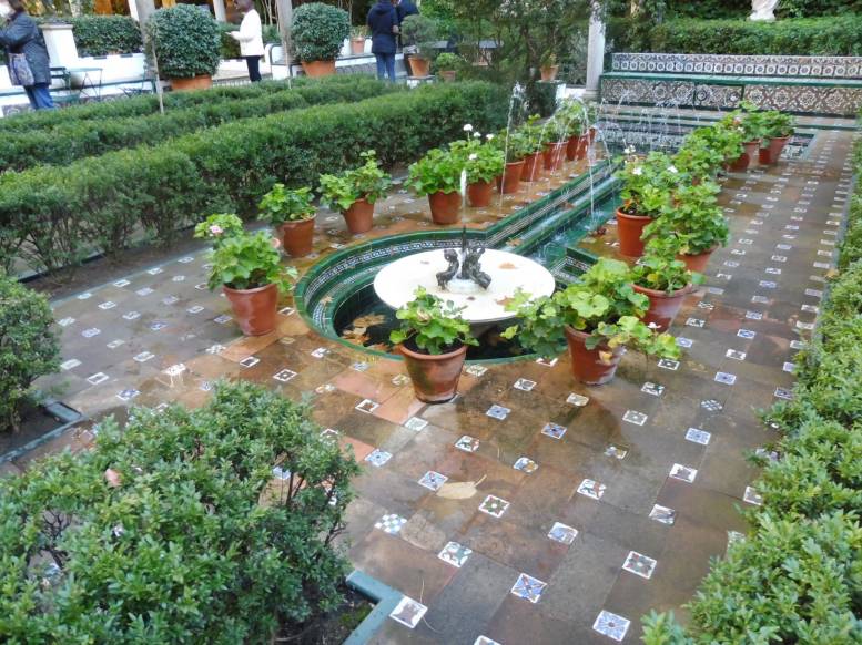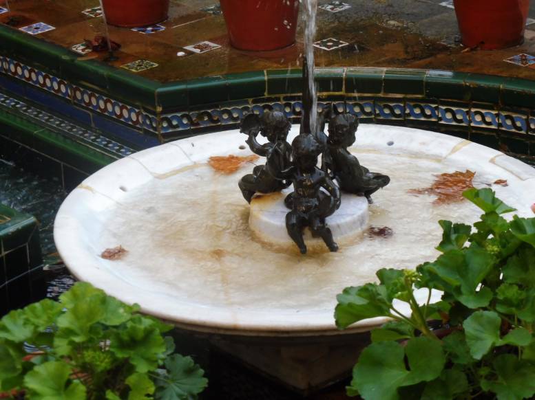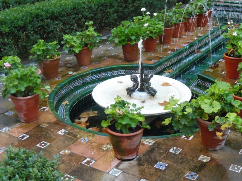 Las fuentes se encuentran en el jardín de entrada, que se divide en tres espacios diferenciados, que recuerdan con sus fuentes, azulejos y arrayanes a la Alhambra de Granada y a los Reales Alcázares de Sevilla, lugares que entusiasmaban al pintor.