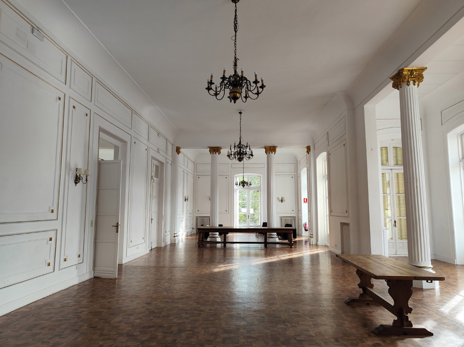 Dobles columnas clásicas enmarcan los elementos clave, como su imponente escalera imperial. La primera planta se encuentra actualmente vacía, y sus salones, que conservan la madera original, se destinan a diferentes eventos. En el exterior destacan los balcones forjados y los frontones triangulares. En 1942 fue reformado y se le añadió una planta superior y un edificio auxiliar en la parte trasera, que convierten el inmueble “en un híbrido entre mansión privada e institución pública”.