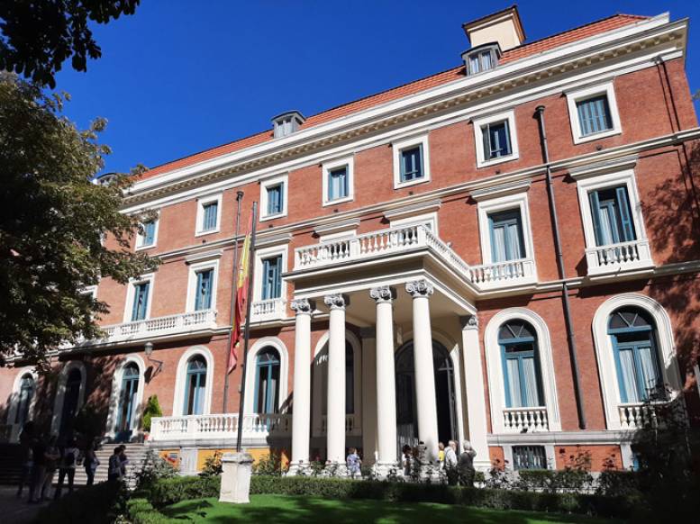 Tras la adquisición por parte del Estado, a mediados de los 90 se lleva a cabo una restauración completa del edificio, que lleva a cabo un gran trabajo de marquetería en los suelos y recupera las pinturas en paredes y techo de Arturo Mélida, pintor, ilustrador y dibujante de gran aceptación en la época, y que también fue escultor y arquitecto. Suya es la alegoría musical del techo del “salón de la rotonda” y también los murales de las paredes del “salón de los continentes” –representados por figuras femeninas y descubiertos en dicha reforma, ya que permanecían ocultos tras unos entelados y pilastras de madera colocados en el periodo de los Mora– y el curioso “salón de las abejas”, denominado así por ser estos animales los que protagonizan la ornamentación.