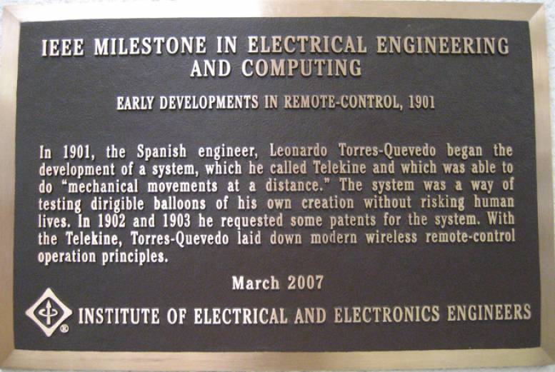 Por otro lado, en 2007 el Institute of Electrical and Electronics Engineers (IEEE) concedería al telekino un “Milestone in Electrical Engineering and Computing”, por “los primeros desarrollos de control remoto”, destacando que “con el Telekino, Torres Quevedo estableció los principios operacionales del moderno control remoto sin cables”. Todo ello lo había hecho en y desde Chamberí.